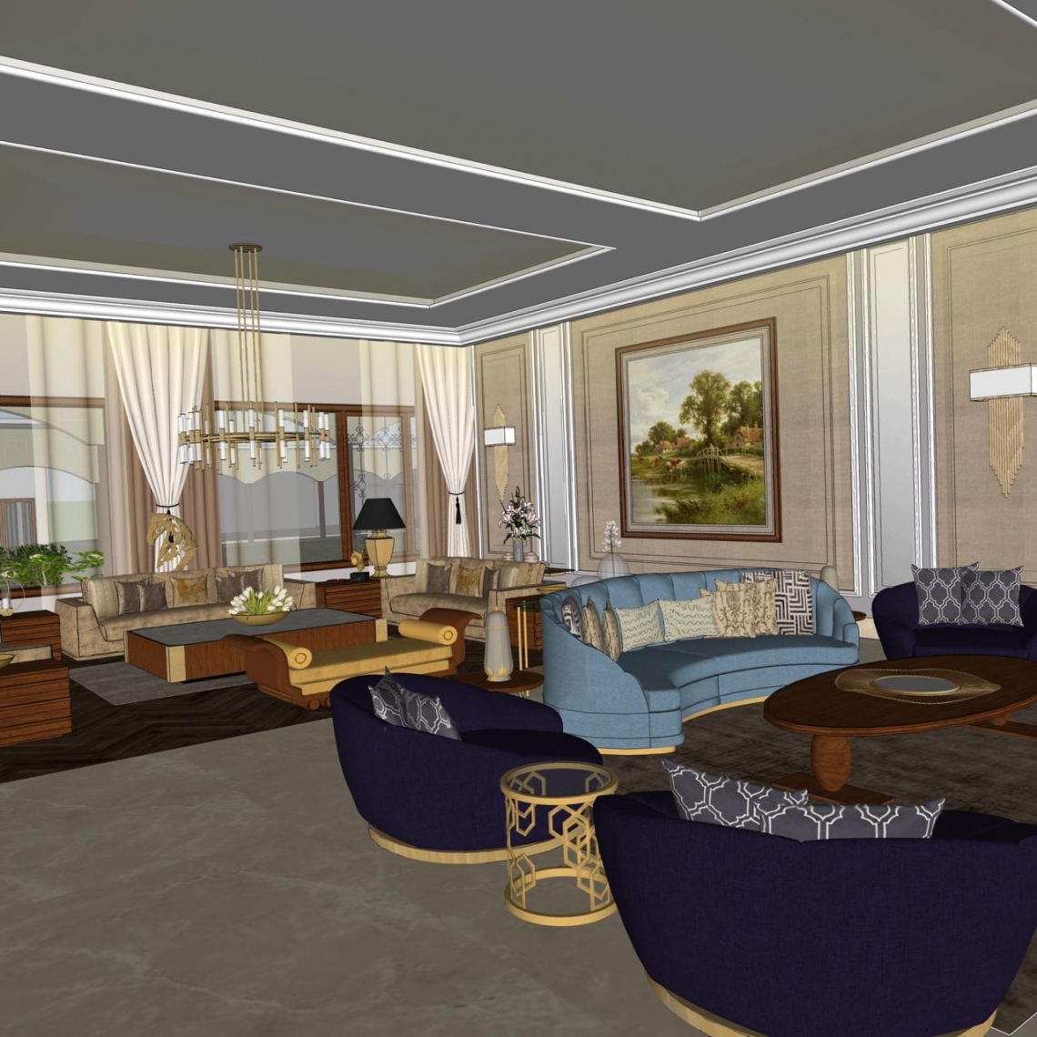 Farm House Great Room, on Kanakapura Road, Bangalore. With Art Deco influenced furniture, warm colour tones, rich fabrics and drapes and venetian plastered walls we have tried to achieve a striking balance between opulence and eclecticism. Taking in vistas of the pool and outhouse beyond, the plush interiors are contrasted with traditional and rustic estate architecture.