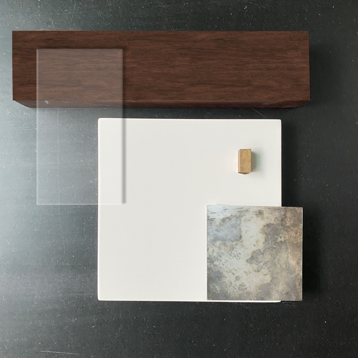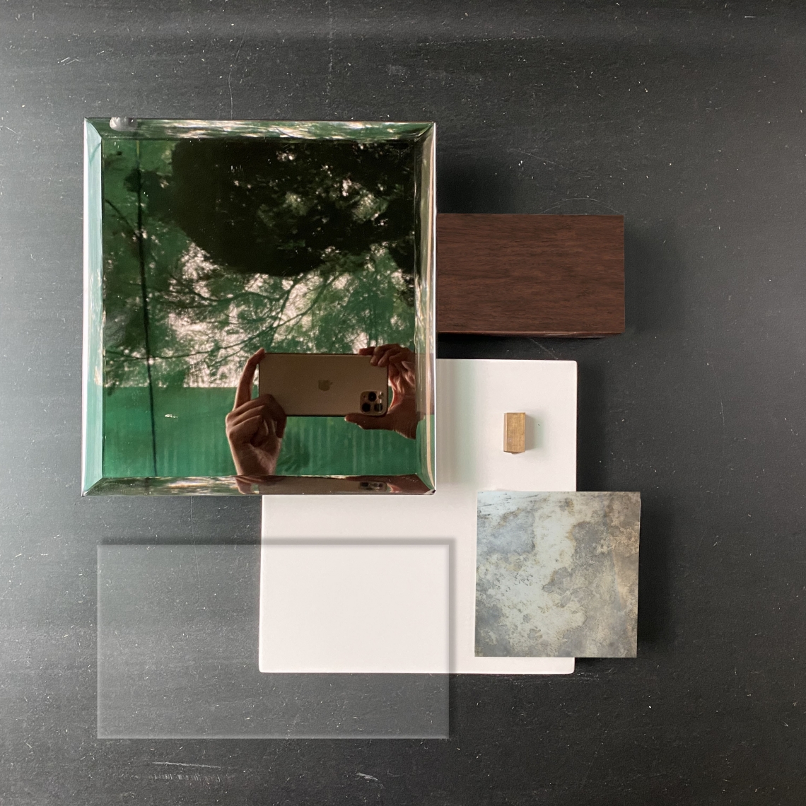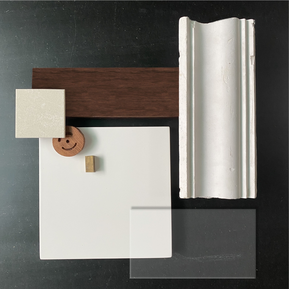 Making a material palate to understand the aesthetic of the space is essential to every design process. This material palate can be made either digitally or using samples of materials with the desired finishes. It helps in seeing which materials go together to make a good composition of colours and textures. The samples also give a good idea of how the final product will look like in the lighting and the space it is intended to be in.