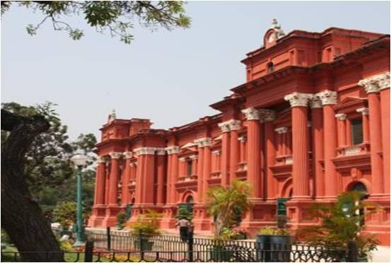The Government Museum, Bangalore was constructed in 1877 and is built in the neoclassical style, with corinthian columns, arches and sloping eaves. Today it houses archaeological artifacts. It's signature red colour and its classical design makes it a landmark building in Bangalore.