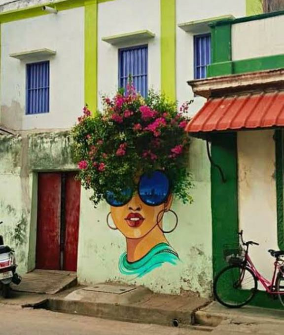 Graffiti walls in Pondicherry. Street art in Singapore.