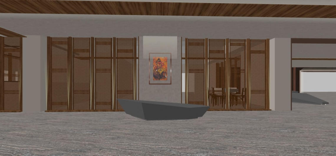 The client wanted the basement to be transformed into the pre function space to the banquet area. The low height meant that we had to keep the space as open and simple as possible. A series of vertical screens provided the relief in breaking up the large space and also helped define various zones such as dining, lobby and recreation areas. The various existing ducts and services were concealed with wooden slats and made part of the false ceiling.