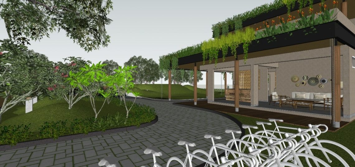 Revamping an existing structure into a Club House, we plan to transform an acre of land into a lush micro-resort, exclusive to the clients of a managed farmland. Cobbled pathways will take you around bio-ponds, up gentle bunds, and onto decks among a site interspersed with young mango trees.