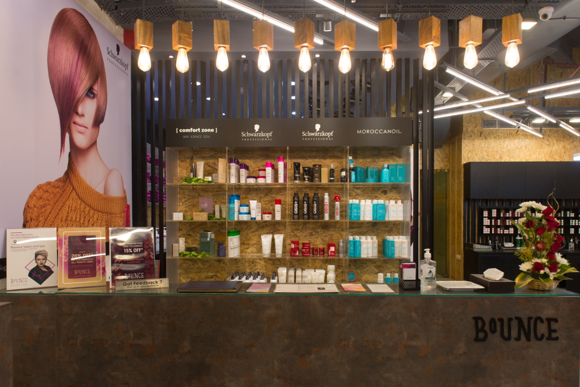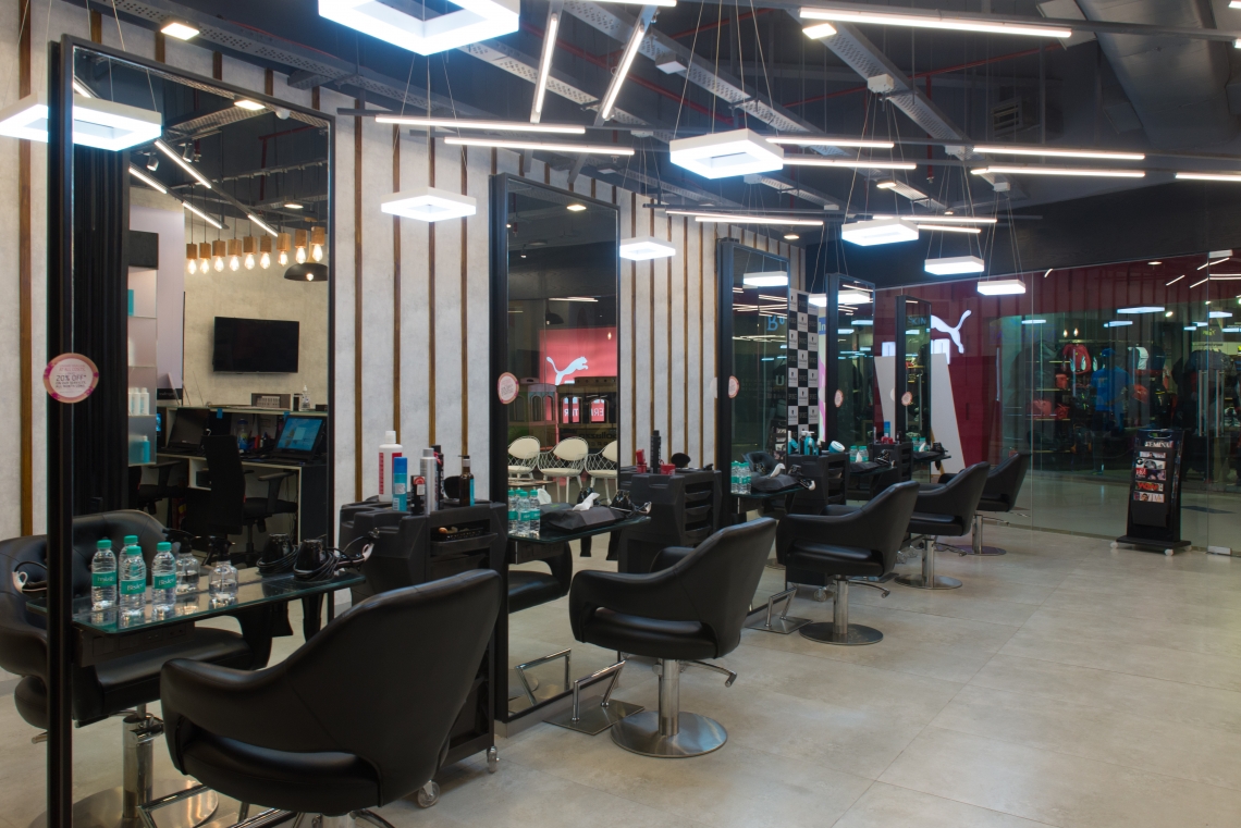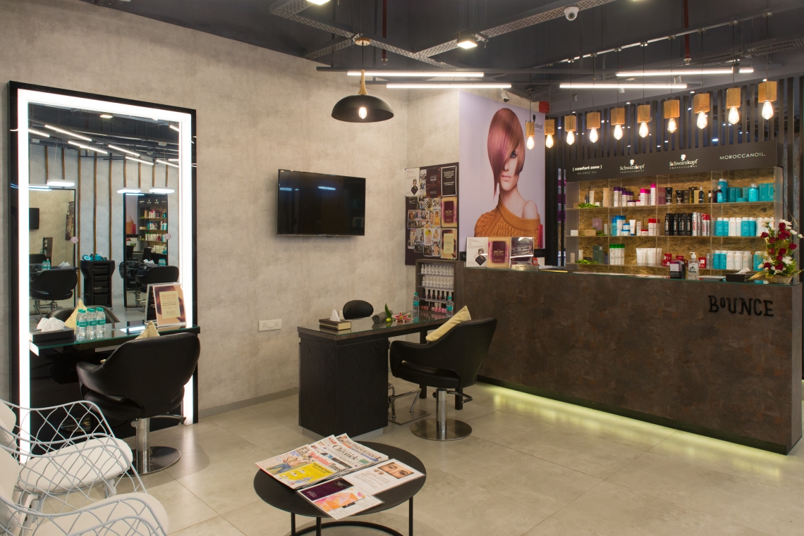 Description: The Dark, industrial, earthy and moody palette defines the Bounce Salon located in a swanky mall in Hyderabad
