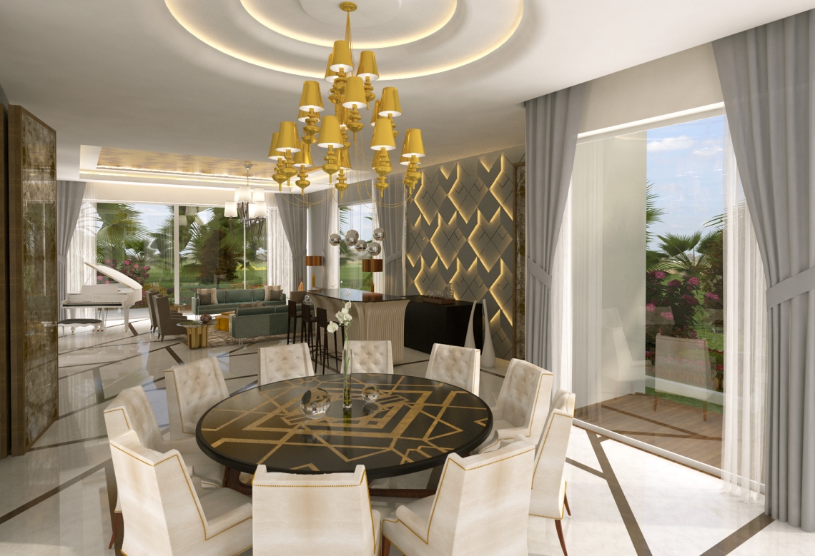 DESCRIPTION: This ultra luxurious villa for an Indian family in Dubai is all about combining sleek modern aesthetics with opulent interiors.