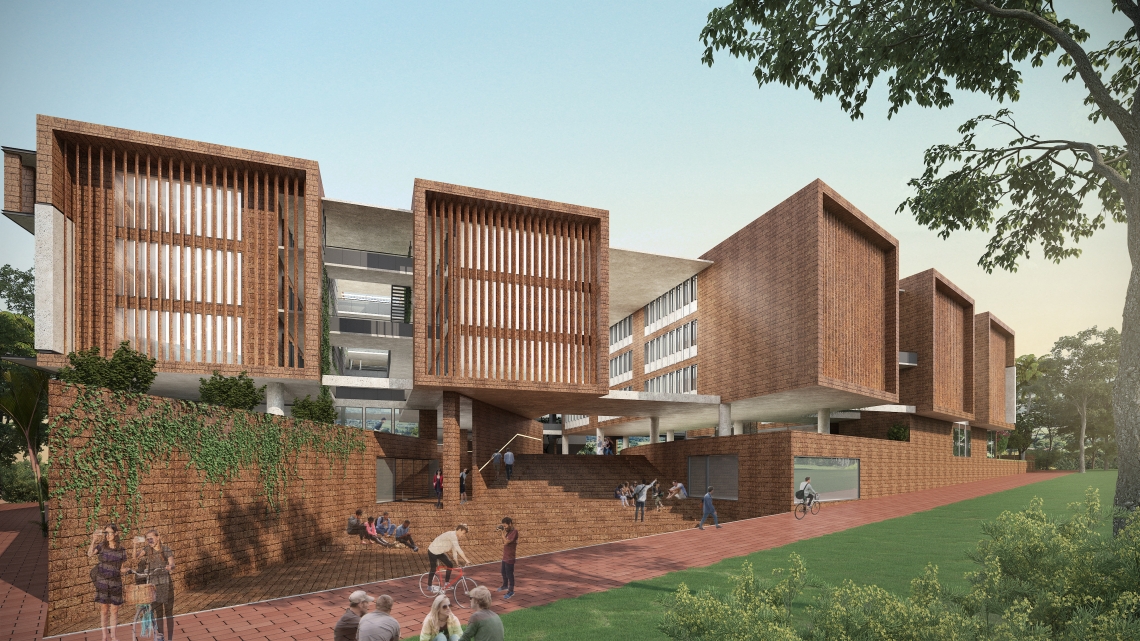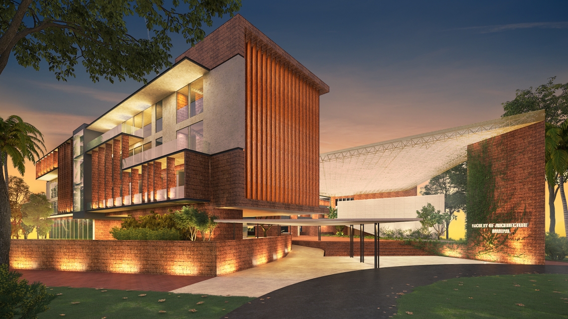 The brief was to create an interesting campus for budding architecture students and create zones for variable forms of interaction in addition to their core program. The design encapsulates that by creating a network of overlapping homotopic spaces intersected with the main public access. The core program hovers above the public spaces and was further connected with secondary and tertiary streets. The morphology was derived by creating a series of courtyards alternating with built classrooms to allow all spaces to be connected with the open. This, in addition to the main orientation of the building, allows for breeze to permeate the entire structure and reduces the surface area exposed to the harsh hot and humid climate of Manipal. The materials were derived from the vernacular archetype but reinvented to suit the modern aesthetic. The design explores concepts like shade and shadow, material exploration and alternates between large grandiose spaces to the small and intimate scale to create a faculty building that is both educational and fun to study in.