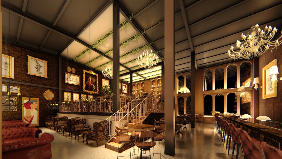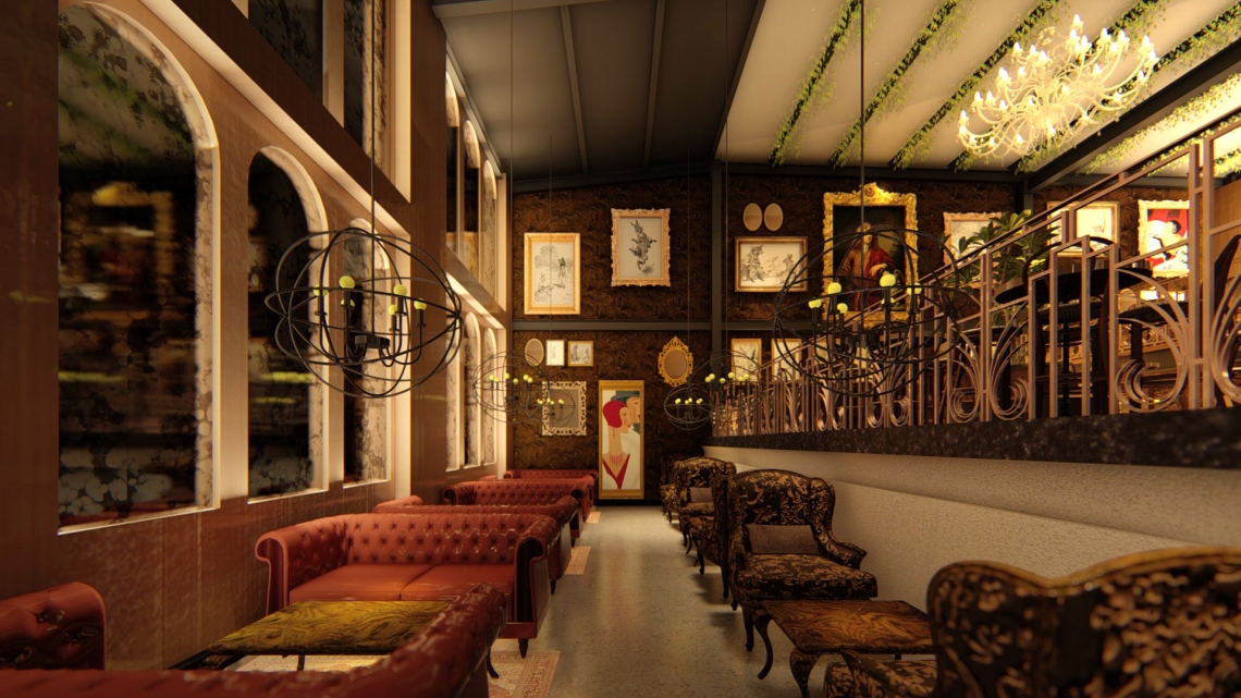 Description: Sitting atop an old house which is redesigned as a restaurant by the same clients, the brief was to create a secret bar, open to a select few. The brief was remniscent of a,1920s speakeasy which had cropped up as a response to the U.S Prohibition of alcohol. The design is a homage to Art Deco movement of the 20s.
