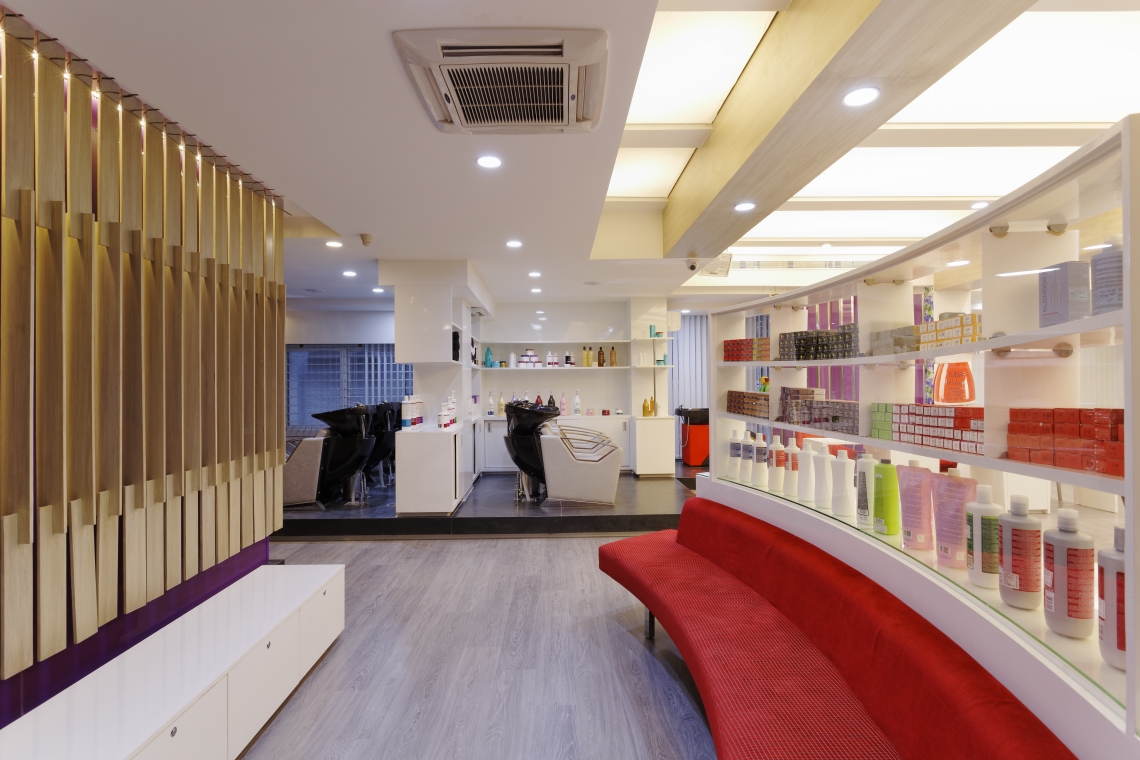 Located in one of the swankiest part of Bangalore, the aim was to create a unisex salon that treads between luxury and vibrance.